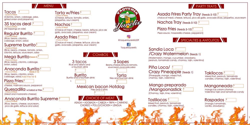 Welcome to Taqueria Yarelis, your go-to Mexican culinary delight located at 429 N Fresno St, Fresno, CA. This vibrant taqueria specializes in authentic street food, with the Anaconda Burrito stealing the spotlight as a must-try dish. Bursting with lean meat and generous fillings, it promises satisfaction with every bite, as noted by delighted customers.